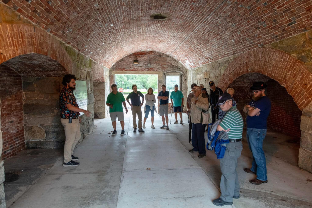 A warm “Huzzah!” to Commander Eric Kirk of James D. Brady Camp #63 for organizing yesterday’s event. Conducted by a Fort Monroe Authority guide, the walking tour focused on the fort’s history in the Civil War and included a visit to the Casemate Museum, where the cell that briefly held Confederate President Jefferson Davis after the war has been preserved. Brothers and spouses from across the Department attended this excellent event.