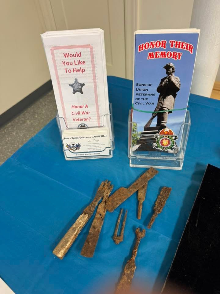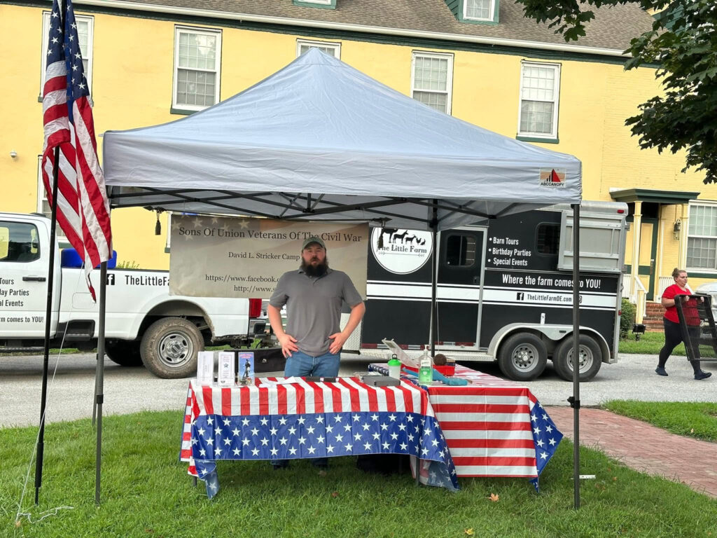 Stricker Camp 64 is all set up for a meet & greet / recruiting effort at the Middletown Historical Society – Peach Festival here in Delaware. Chris Collins will be manning the booth. Civil war artifacts and tintypes will be on display and I believe GAR medals as well.
